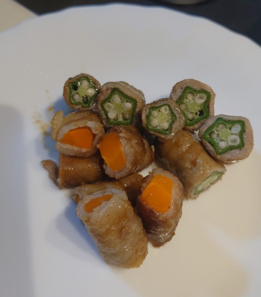 この写真はスーパーで買った星型のオクラを肉巻きにしてみました!