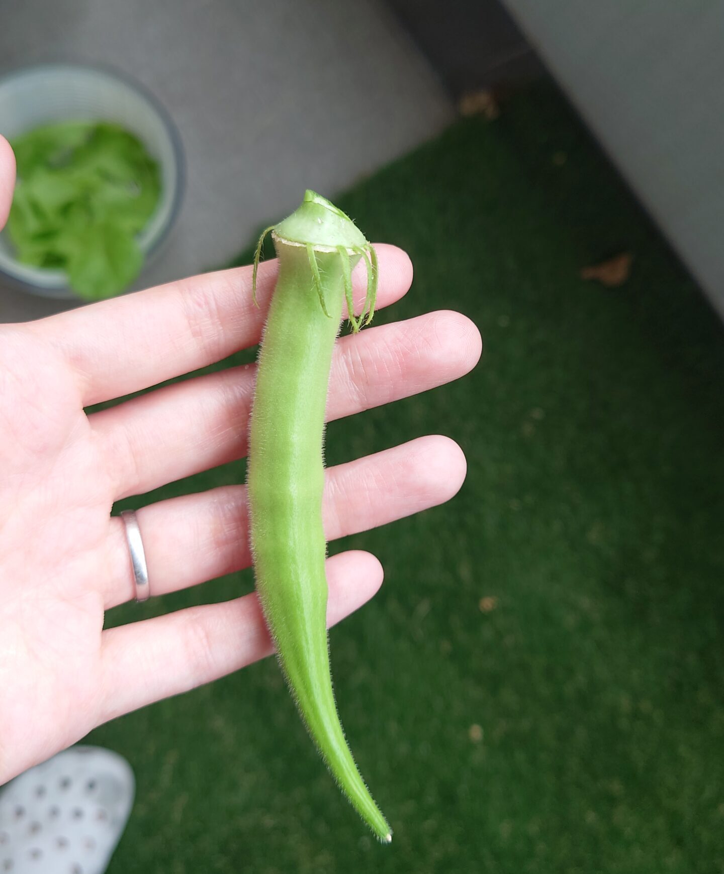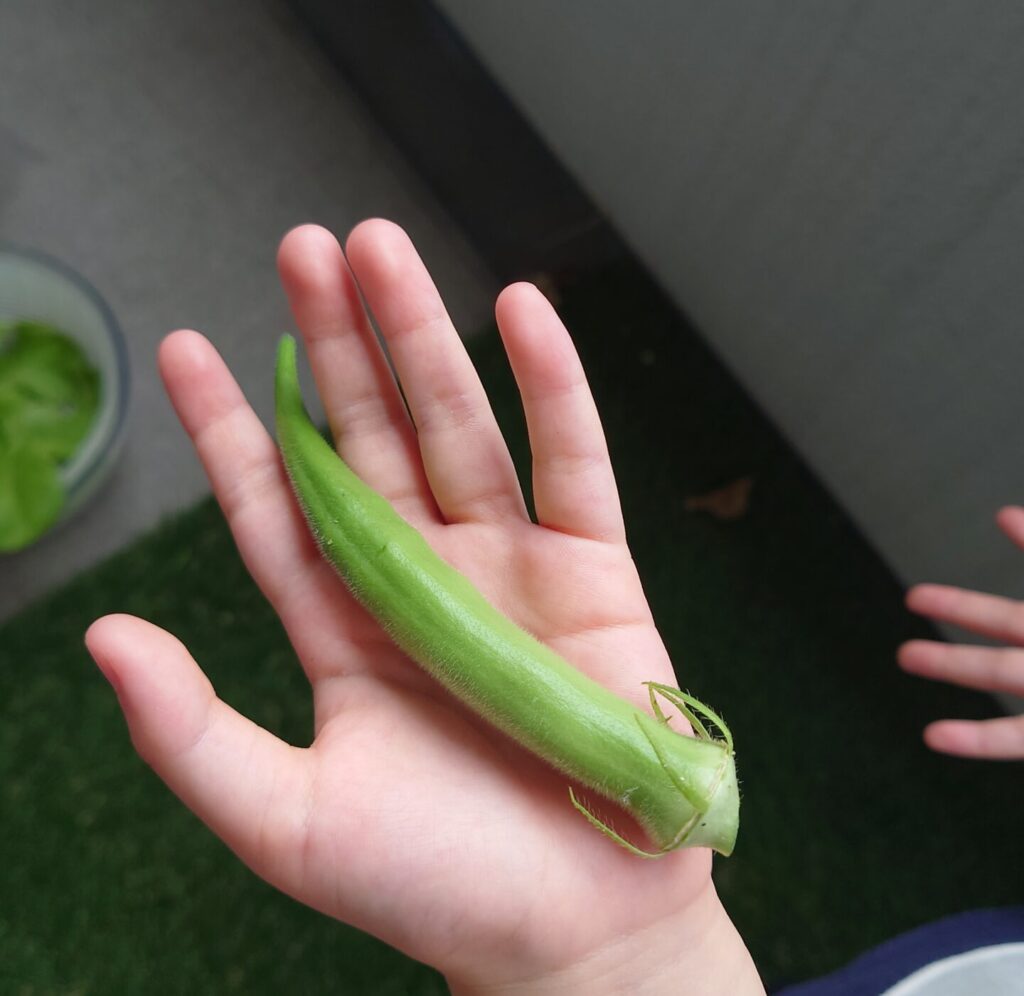 記念すべき1っ本目のオクラ!めちゃくちゃ嬉しい!